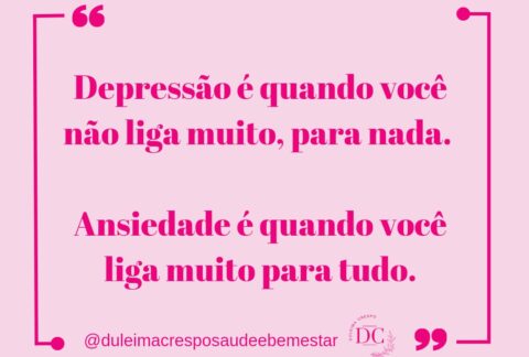 Depressão é quando você não liga muito, para nada. Ansiedade é quando você liga muito para tudo.